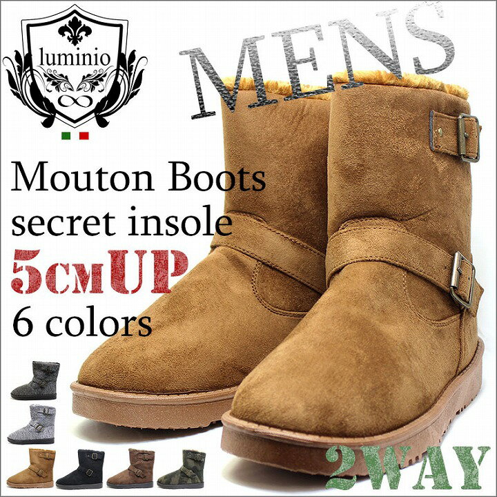 ムートンブーツ シークレット インソール付 エンジニア 2way 5cmUP 秋冬はやっぱりムートン!大人気ムートンブーツが登場!この時期 絶対に頼れる鉄板ブーツ! ヘビロテ確定!主役級メンズムートンブーツが仲間入り!今年はの密度が格段にアップ!! ふわふわもこもこのファーに仕上がっています。